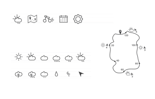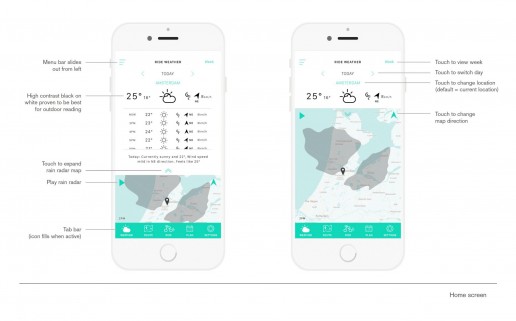 Ride smartphone app / concept design for a cyclists to check the weather on and get weather determined routes.