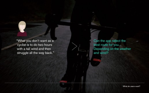 I loved the user research for this app – being keen on cycling myself and in a triathlon training team at the time I had some really great input and feedback.