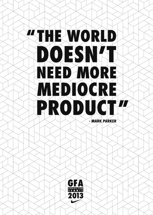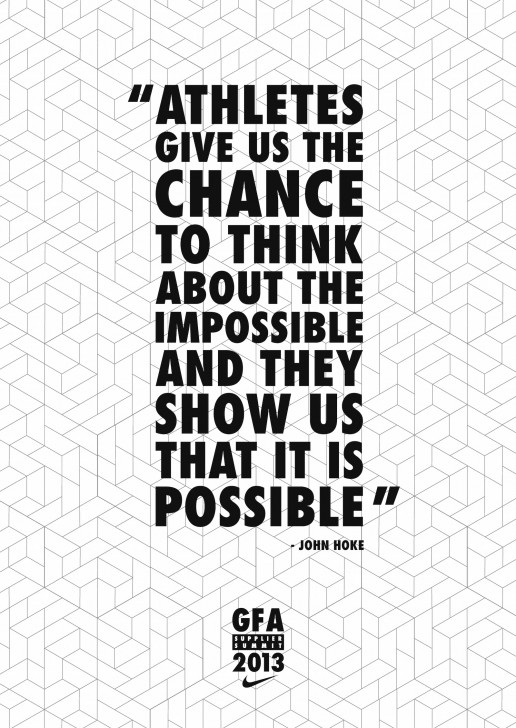 I designed print material for the 2013 suppliers summit which Nike Football holds a once a year. All suppliers are invited to come and discuss current and future ideas and developments and innovations that will result in the best possible product. The goal was to get the suppliers thinking about innovation and what they can do to increase creativity and impact product across their different specialties.